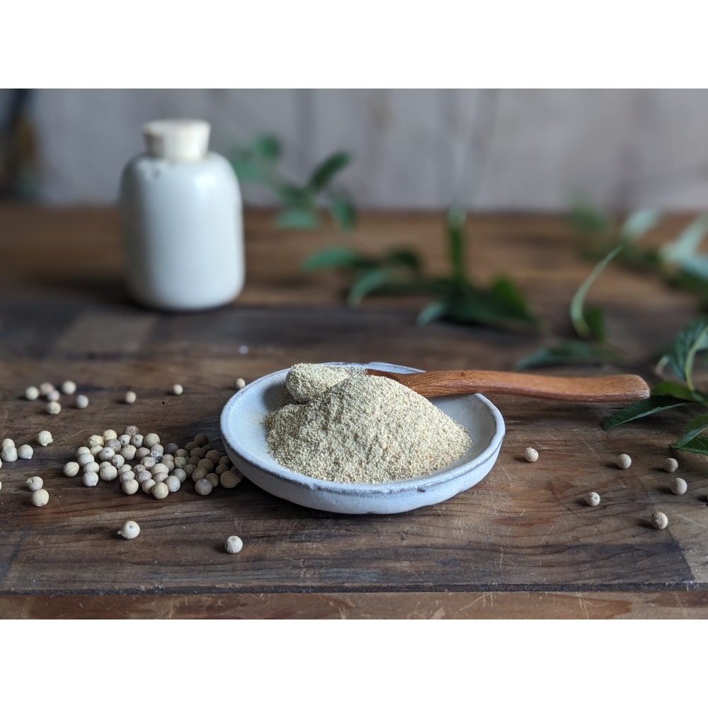 本款白胡椒粉同時也是清香號招牌沙茶醬的重要配方之一,溫厚濃郁的辛韻能突顯食材本味,帶來柔和而深邃的風味表現,更有助於暖身驅寒,為日常三餐增添一抹溫暖熱度。